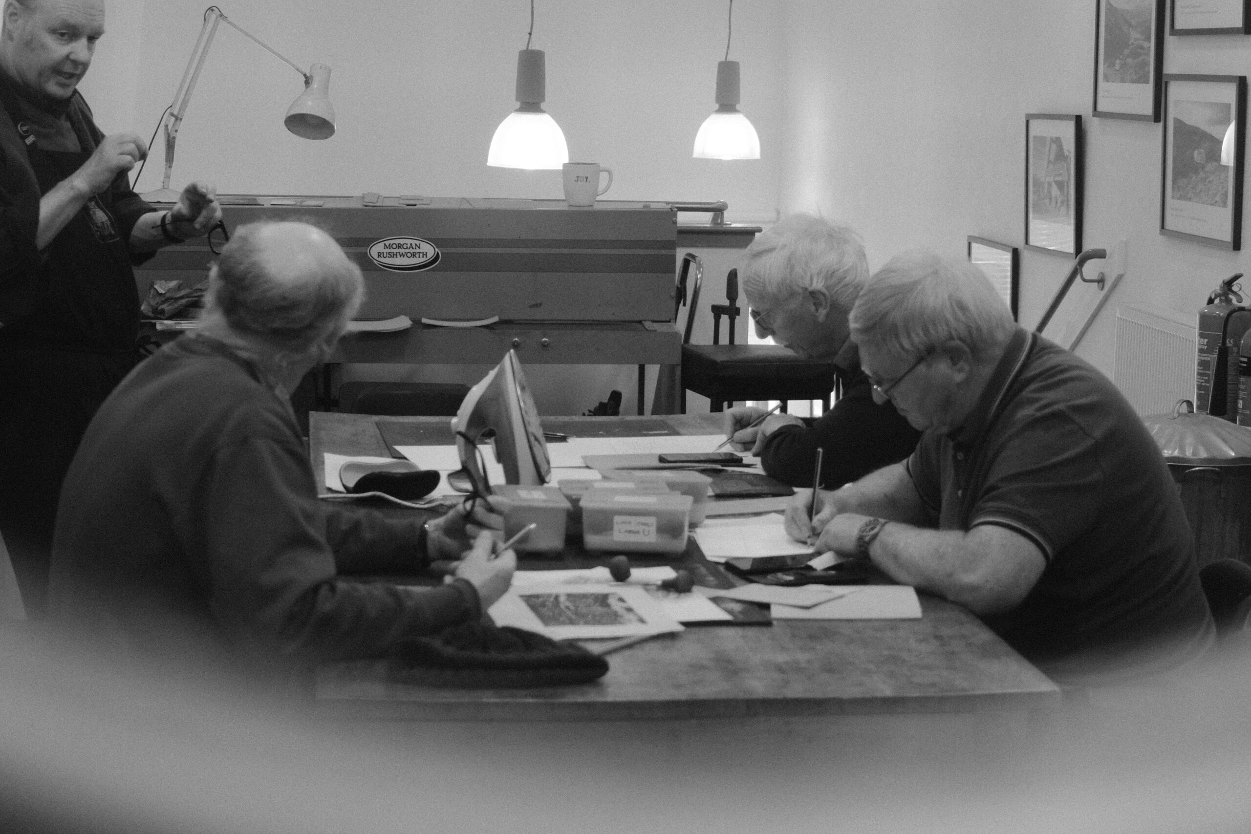 We recently relaunched our Wise Guys project, introducing men over the age of 60 to the arts and printmaking through a series of weekly workshops at our studio. Our first cohort of Wise Guys joined us 12 years ago and we have been delighted to be able to offer this project for participation since then, with numerous grants and funding from different organisations over this years. This years Wise Guys project was kindly supported with funding from Highland Council.